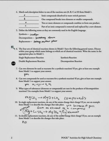 A student writes the following incorrect chemical equation for a single pogil redox answer key from types of chemical reactions worksheet pogil , source:academia.edu five types chemical reaction worksheet from. Start studying photosynthesis pogil answers. Hodgson julia pap chemistry assignments. Look at the chemical reactions above; Membrane structure and function pogil answer key.